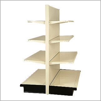 Our Gondola units are sold as kits and are designed to meet all your fixture needs. This system features a 1” on center slotting designed to exceed the load capacity of most retailer’s needs. These units are virtually nut and bolt free and are easy to install. Other features include White/Almond Color Options, Heavy Duty Slotted Post, Designed for Rugged Use, Maximum Versatility, Easy and Adjustable Setup, and Z-Position Shelves. A wide selection of component parts and accessories can be added to the Gondola Units, including shelves, racks wire fencing and back lit canopies, just to mention a few.